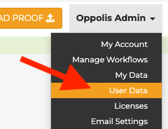 Click on your Profile name located on the top-right corner of the screen and select User Data