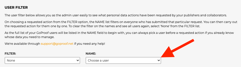 Scroll down to the User Filter section. In the Name dropdown select the User which you'd like to export their data for.
